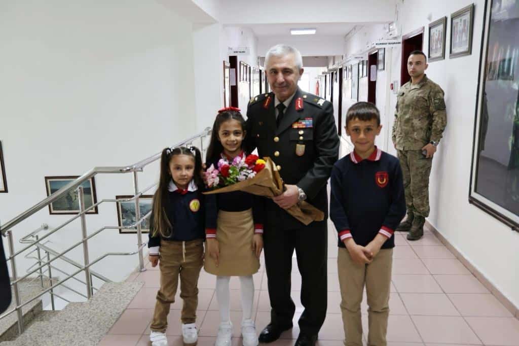 Okul Müdürümüz Emrah ÖZTÜRK, 1. sınıf öğretmenimiz Ayşe ÇINAR, öğrencilerimiz Güneş Su Orhan, Muhammet Fatih Günal ve İlknur Yolcu Ardahan Garnizon Komutanımzı General Mehmet Cihanoğlu'nu makamında ziyaret etti.
